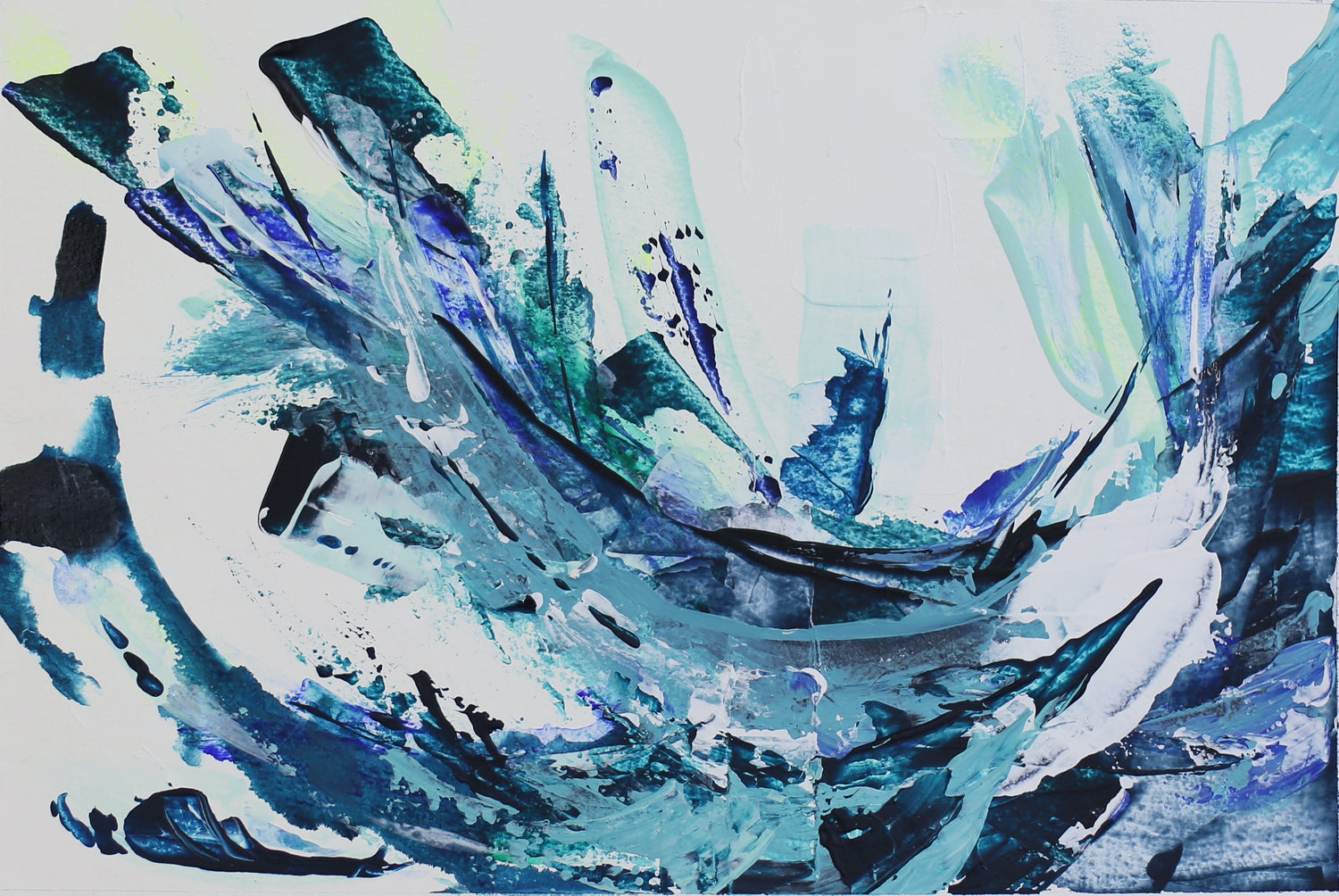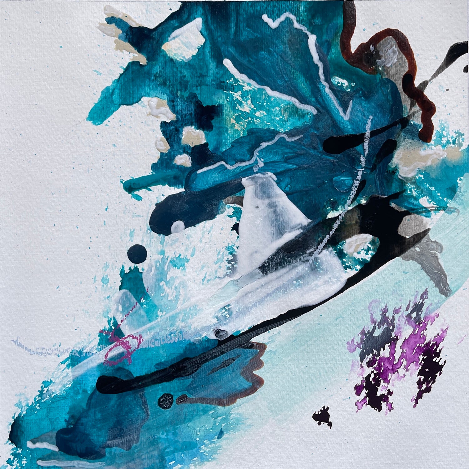 Abstract colors communicate the vibe of a place while still holding space for folks to see their own experiences in the painting